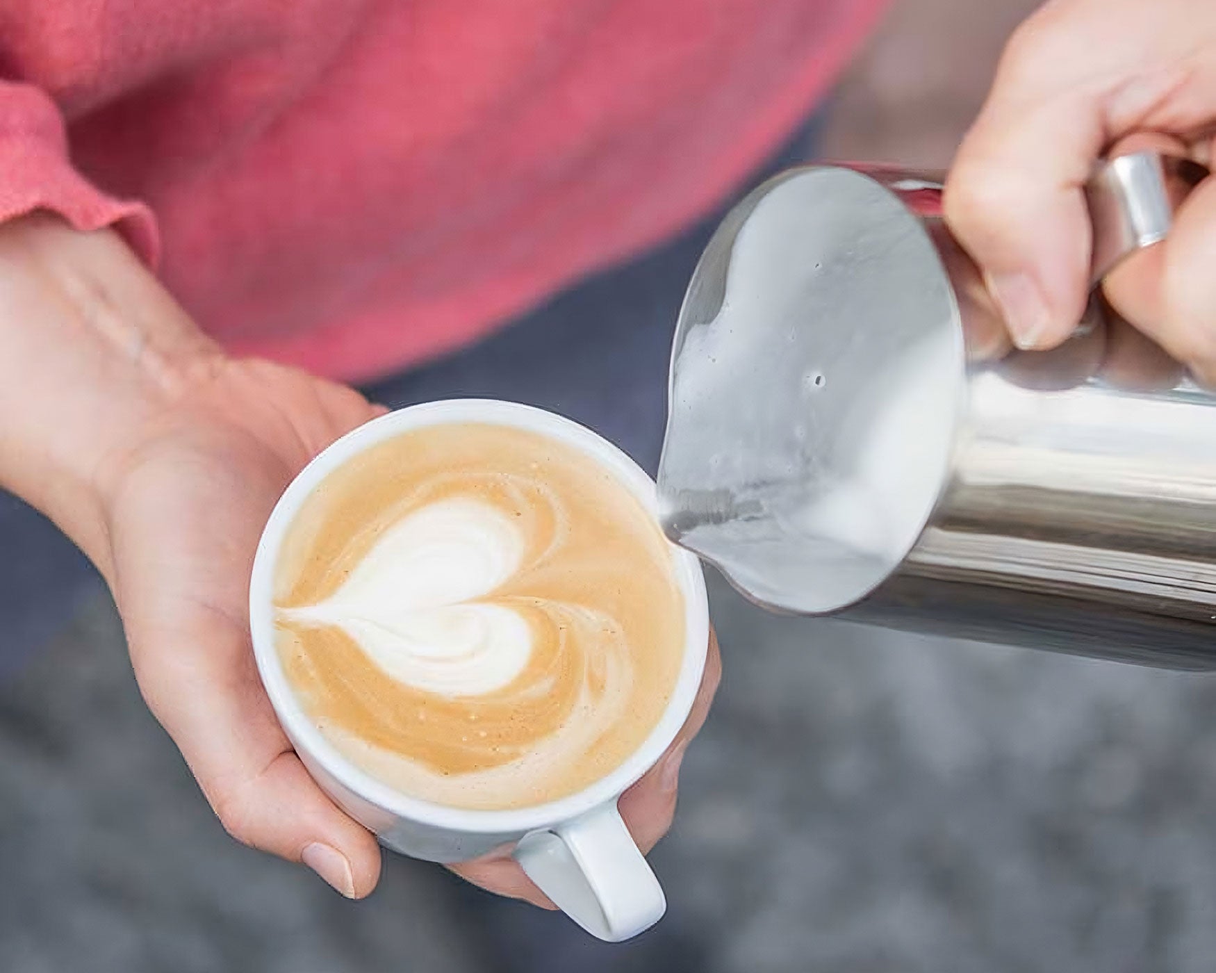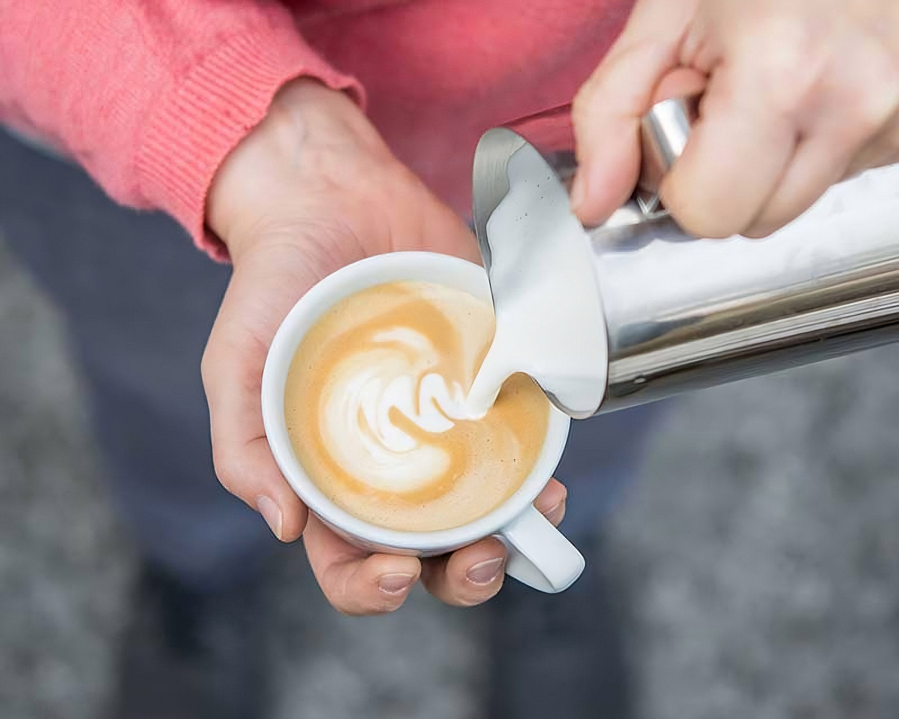 Für das Schäumen eignet sich prinzipiell jede Art von Milch. Jedoch können Geschmack, Mundgefühl und Cremigkeit sehr stark variieren. Fettarme Milch bildet sehr viel Schaum, fühlt sich aber trocken an. Vollmilch hingegen produziert weniger Schaum, dafür ist die Konsistenz cremig und samtig – genau so, wie ein Barista es für Latte Art benötigt.